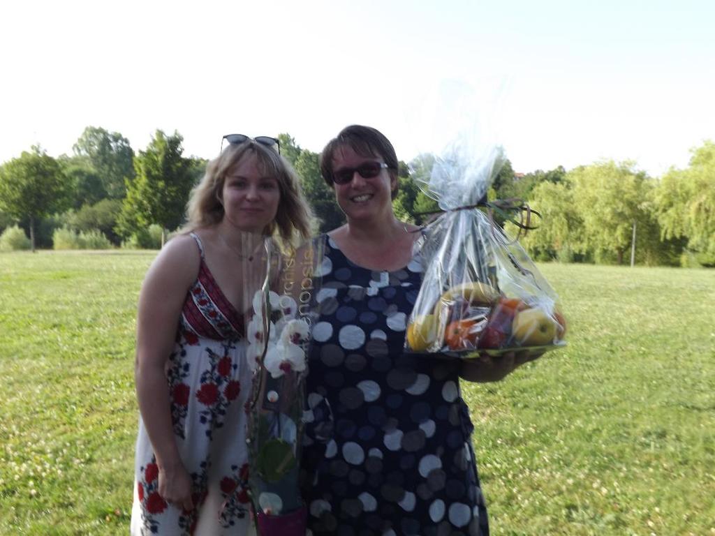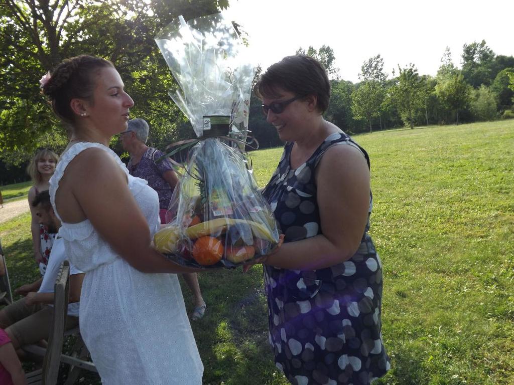 Phiphi qui aide à l'entraînement des Eveils, babygym et tout p'tit gym c'est vu remettre un coffret avec des bière. Kathy, qui aide aussi pour les Eveils, à quand a elle reçu une corbeille de fruit. Céline responsable du groupe Eveil et pour qui c'était sa dernière année a reçu une magnifique orchidée ainsi qu'une corbeille de fleurs. C'est cadeaux ont été offert par le club pour phiphi et kathy et par les membres du comités directeur pour Céline pour la remercier de son engagement pendant toutes ces années.